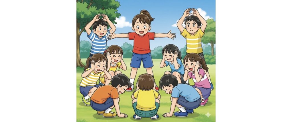 この「(自分の名前)」のルールがこのゲームのポイントです。他の指示には素早く反応するけれど、自分の名前が呼ばれたら動かない。このルールを守ることで、子どもの集中力や注意力が試されます。