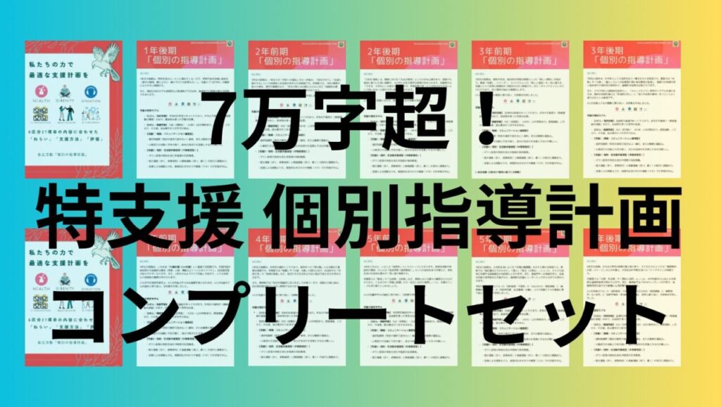現在、noteにて「1〜6年生 全学年 + 自立活動特化版 個別の指導計画 文例集 コンプリートセット」を販売しています。